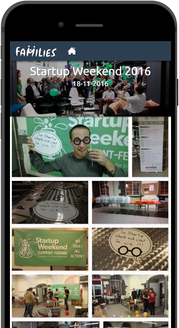 En plus des photographes professionnels, tous les participants peuvent ajouter leurs propres photos dans vos événements. Ils peuvent aussi ajouter des commentaires sur les meilleurs clichés. Ils disposent pour cela de l'application Families, disponible au téléchargment sur les différents Stores.